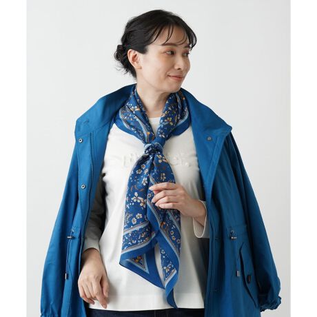 巻き方一つでコーディネートが何倍にも楽しくなるデザインスカーフ。滑らかな光沢を持つ上質な繊維ならではのとろみのある素材感で、首元から華やかなスタイリングを演出します。