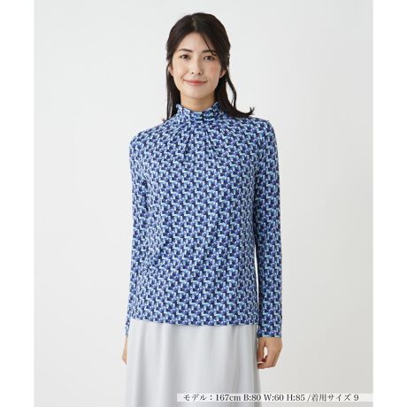 オプティカルな幾何学柄が印象的なハイネックカットソー。ネックラインにはタックを施し、立体的で洗練されたシルエットを生み出しています。デザインのこだわりが際立つ一枚は、ワイドパンツと合わせてリラックス感のあるカジュアルスタイルにも、ロングスカートを組み合わせて上品で大人フェミニンなコーディネートにもマッチ。日常から週末のお出かけまで多彩なシーンで幅広く活躍するアイテムです。