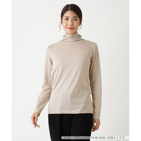 表面にラメが煌めく、リュクス感溢れるデザインのハイネックカットソー。カシミヤやシルクをブレンドした柔らかく上品な生地の風合いも相俟って、ひと味違ったカジュアルスタイルを演出。くしゅっとした自然なドレープ感のあるネックが柔らかな女性らしいムードを演出。すっきりとしたシルエットで着こなしやすく、一枚ではもちろん、合わせるアウターやボトムスを選ばずにコーディネートに取り入れやすくなっています。