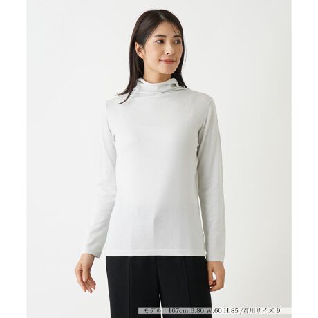 表面にラメが煌めく、リュクス感溢れるデザインのハイネックカットソー。カシミヤやシルクをブレンドした柔らかく上品な生地の風合いも相俟って、ひと味違ったカジュアルスタイルを演出。くしゅっとした自然なドレープ感のあるネックが柔らかな女性らしいムードを演出。すっきりとしたシルエットで着こなしやすく、一枚ではもちろん、合わせるアウターやボトムスを選ばずにコーディネートに取り入れやすくなっています。