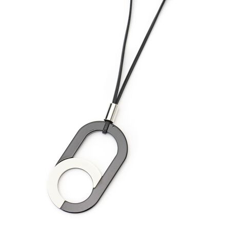 ユニークなモチーフにナチュラルな色合いが印象的なネックレス。人工のなめらかな素材のコードに重厚感もあり、コーディネートをぐっと上品に引き締めてくれるアイテムです。一つでも存在感がありますが、小さなジュエリーとの重ね付けも楽しめます。