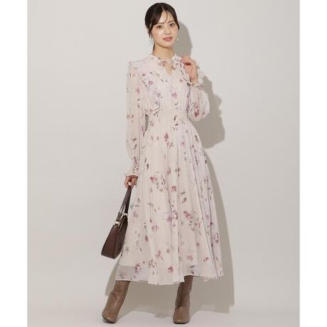 儚げな水彩風フラワープリントのロングワンピース【Design】・落ち着きのある水彩風の花柄デザインがコーディネートを彩るウエストシャーリングワンピース。・WILLSELECTIONで人気のオリジナルプリントの新作アイテムです♪・同じパターンを使用した「フラワープリントボリュームタックスカート(品番:20082522100114)」もおすすめです!・ウエストと袖口はシャーリング仕様になっており、伸縮性のある仕上がり。・袖部分は程よくシアー感があり、ロングシーズンお楽しみいただけます♪・背中ファスナー付き。【Fabric】・オリジナルのフラワープリント施した生地を使用。・裏地付き。・ご自宅でお手入れが出来るのも嬉しいポイント♪・ホワイト、ピンク、ブラウンの3色展開となります。【Care】手洗い可能