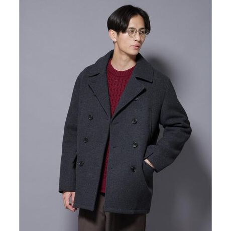 クラシックなU.S. NAVYの10ボタンPコートをベースに、現代的な感覚でややリラックスしたシルエットにアップデート。ダブルブレストの力強いデザインと、しっかりと立ち上がる大ぶりの襟が印象的な1着。