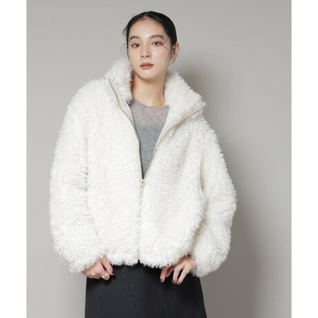 ・存在感あるボアタイプのファー素材で仕立てたブルゾンアウター