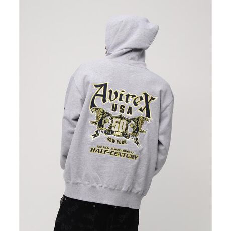 ・ヘビーウェイトなジップアップパーカー・50周年をモチーフにした豪華なグラフィク・ブラックとグレーの2色展開【AVIREX/アヴィレックス】1975年にアメリカ空軍のコントラクターとして創業し、フライトジャケットを供給した事でその認知度を飛躍的に高めた。ミリタリーに起源を持つアヴィレックスは、機能的なデザインが醸し出す特有の美しさに支えられている。その個性的な表情は、映画「インディー・ジョーンズ」「トップガン」「メンフィスベル」などのスクリーンでも活躍し、喝采を浴びた。その無駄の無いデザイン、ノスタルジックな味わいは今なお世界中の多くの人々から支持され続けている。■お使いのパソコンのモニターによって、実物商品とカラーが異なって 見える場合があります。誠に申し訳ございませんが、ご理解下さいます様お願いいたします。■当ショップの在庫数は 直営店舗の商品も含まれています。在庫数が日々変動する為、ご注文頂いた時点で在庫が完売になっている場合がございます。■サイズ表は、製品の生地や織りなどの特性により、多少の誤差はございます。予めご了承ください。■画像の商品はサンプルです。実際の商品では、仕様・加工等若干異なる場合がございます。