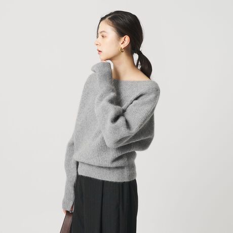 フォックスのふんわり感とシルエットが映えるボートネックニット