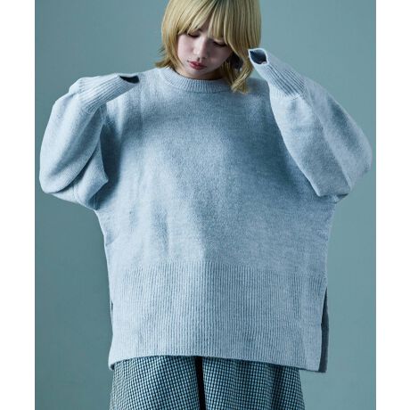 ぽてっとしたボリューム袖と、ゆるっとしたロング丈でこなれた雰囲気。