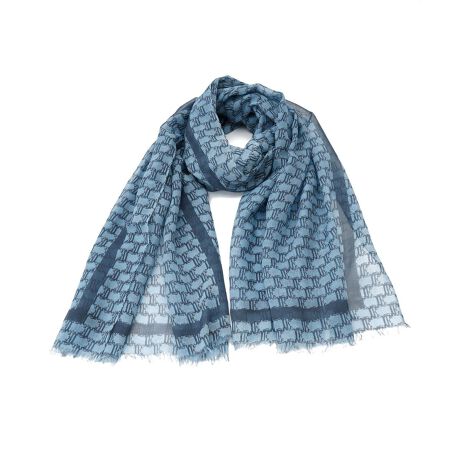 さらりとした軽やかな肌触りで長く愛用できるコットン系素材のストール。ロゴをモチーフにしたモノグラム調の総柄が、重厚感のある仕上がりです。ネックラインにふわりと巻き付けるだけでも、クラシックな雰囲気を演出できます。