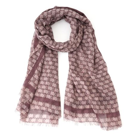 さらりとした軽やかな肌触りで長く愛用できるコットン系素材のストール。ロゴをモチーフにしたモノグラム調の総柄が、重厚感のある仕上がりです。ネックラインにふわりと巻き付けるだけでも、クラシックな雰囲気を演出できます。