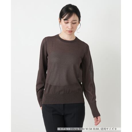軽やかなシアーニットでシーズンらしい軽やかさを意識下ながらスタイリングできる、クルーネックの長袖プルオーバー。すっきりとしたコンパクトなシルエットだから、ワイドパンツやフレアスカートともバランスよくコーディネートできるのが嬉しい。