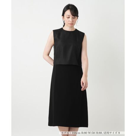 異素材ミックスデザインのノースリーブワンピース。ワントーンでも表情があるので、1枚着でオシャレをアピールできます。シーンによってアクセサリーや小物使いで変化を楽しむのも◎。ワードローブにスタンバイしておきたいアイテムです。