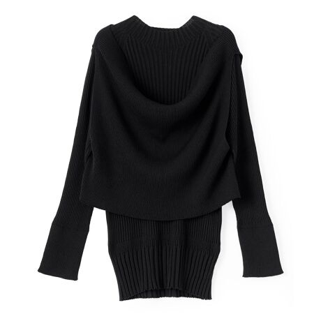 リブニットインナーにアウターベストを重ねた、奥行きのあるレイヤードルックを楽しめるハイネックニットトップス。ベストを自由に取り外せる2WAY仕様のため、その日の気分や気温に合わせた着こなしが自在に広がります。初夏まで快適に過ごせるやや薄手の軽やかなニットの質感が、繊細なリブ編みと相まって美しいボディラインを演出。シンプルながらも計算された都会的な佇まいが幅広いボトムスを品良く引き立てる、ワードローブに欠かせないアイテムです。