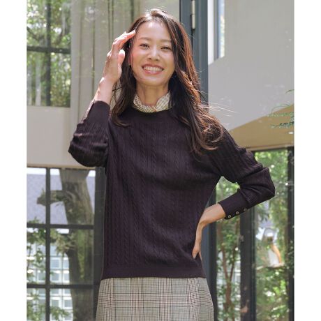 ロングシーズン活躍!ケーブル柄が程よい存在感を放つ、定番のクルーネックニット