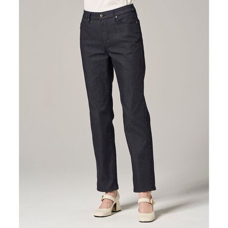 ストレートデニム。縦糸には綿デニムの表情を特殊染色により再現したポリエステル糸を、緯糸は東レの中空糸とポリウレタンを使用しています。色落ちや色移りの心配がなく、ストレッチの履き心地の良さも併せ持つデニムパンツです。