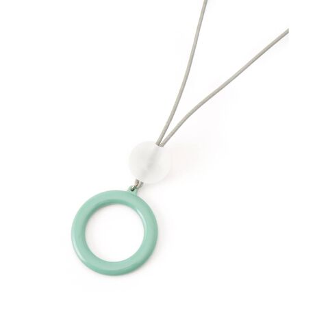 大きなカラー樹脂リングとマットな質感のクリアボールが爽やかに調和したロングネックレス。カラーコードはスライダー付きで長さを自在に調節でき、トップスのネックラインに合わせてアレンジできるのが嬉しいポイントです。