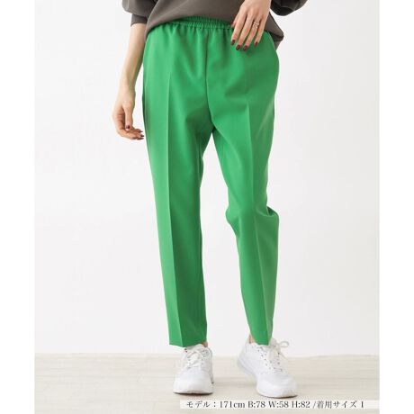 豊富なカラーバリエーションで揃えたカジュアルパンツ。腿周りにゆとりをもたせながらも、裾に向かって絞り込んだシルエットがスマートな着こなしを演出。ストレッチの効いたほんのり光沢のある生地を使用しているので足捌きも良好。ウエストは総ゴム仕様で心地よくフィットします。トップスとも合わせやすく、多彩なコーディネートに取り入れやすい1本です。