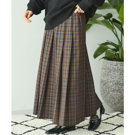 クラシカルなタータンチェック柄が目を惹くスカート。広がりすぎない上品なプリーツが揺れ動き、女性らしい着こなしを演出します。バックウエストはゴムで楽に着脱でき、リラクシーな穿き心地も魅力的。すっきりとしたシルエットでオーバーサイズのトップスとも相性よく、デイリーに活躍するおすすめのアイテムです。透け感[なし]
