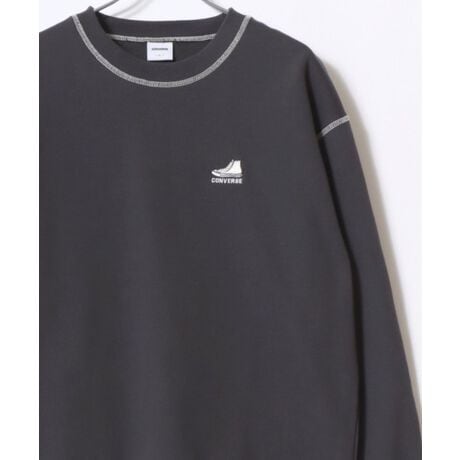 2025AW CONVERSE/コンバース 裏起毛 ワンポイント刺繍 配色ステッチ リブライン サイドラインスウェットトレーナー レディース メンズ