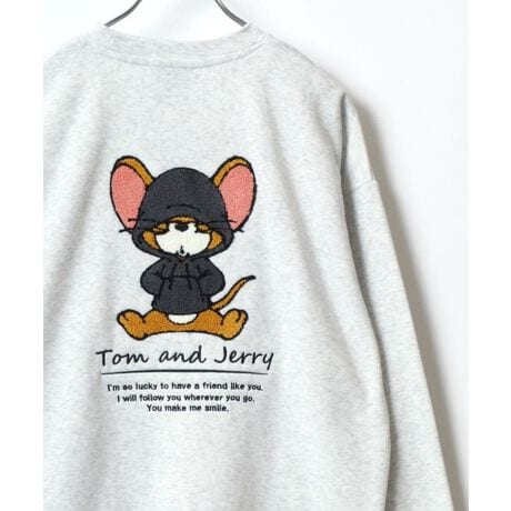 2025AW Tom and Jerry/トムとジェリー ワンポイント バックサガラ刺繍 プリント 裏起毛 オーバーサイズ スウェット レディース メンズ トレーナー