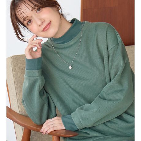 表面感のある縦畝ニットソーの裏起毛に、衿周りのリブでさらにあったかさがUP。さらに、ご家庭で手軽に洗えるので、デイリーユースにぴったりです。