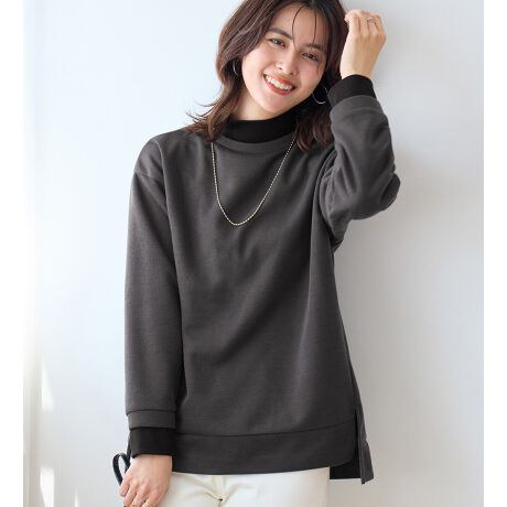 表面感のある縦畝ニットソーの裏起毛に、衿周りのリブでさらにあったかさがUP。さらに、ご家庭で手軽に洗えるので、デイリーユースにぴったりです。
