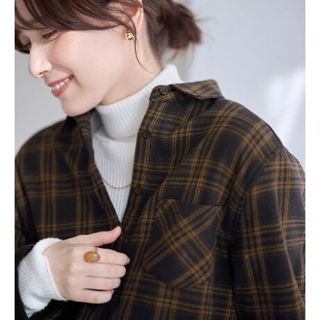 ・表面はチェック柄のネル素材なのに、裏面は薄手フリースの機能的なシャツ。