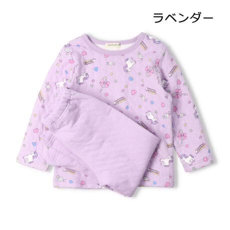 ネットショップと専門店、セレクトショップなど限定のアイテム!直営店では直営オンラインショップ「こどもの森e-shop」各店のみでの販売になります。【直営実店舗での販売はありません。】冬にオススメなキルティング、キルト素材のパジャマ、ルームウェア。オフホワイトはカップケーキなどのスイーツ、ラベンダーはユニコーン、ピンクはドーナッツのカラーによって違う総柄。どれも女の子が大好きな総柄です!140、150、160cmのスクールサイズ、ジュニアサイズもあります!(ベビーサイズのみ着替えのしやすい肩ボタン、お腹が出ない脇ボタン仕様です。)【アイテム】雑貨 カジュアル お洒落 オシャレ かっこいい かわいい 可愛い 普段着 デイリーウェア お出かけ 子ども こども 女児 女の子 ガールズ キッズ ベビーサイズ トドラーサイズ ルームウェア 寝巻 幼稚園 保育園 小学校 通園 通学 小学生 遠足 旅行 2025年秋冬物新作 丸高衣料 小物 ラベンダー ピンク ドーナツ キッズフォーレ コットン100% 綿100%