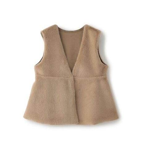 ●フェイクファーとスエード調素材の2つの表情が楽しめるリバーシブルジレ