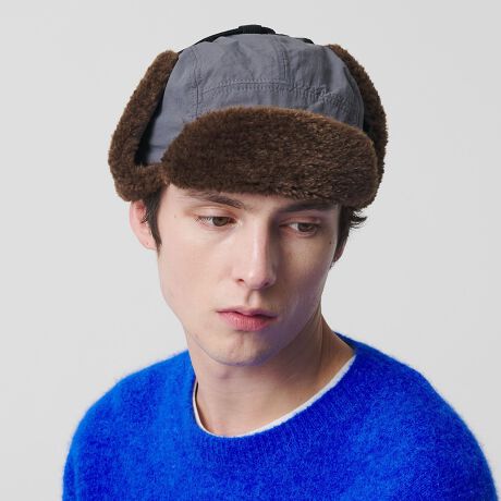 ナチュラルな風合いのナイロンとポリエステル製ボアを組み合わせたフライトキャップ。