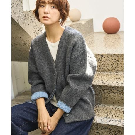 もこもことした表情感がフェミニンで暖かみのあるニットカーディガン。裏面配色のWフェイス仕立てで、袖口を折り返してもおしゃれに着こなせる1着です。オーバーサイズながらも深めのVネックデザインがすっきりとした印象をプラス。さっと羽織るだけで秋冬ムードを高めてくれるおすすめのアイテムです。鮮やかなカラーを含めた豊富なバリエーションにも注目。
