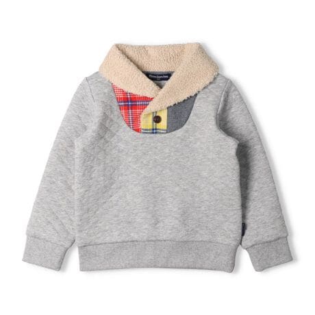 暖かみのある中綿入りのニットキルト素材のトレーナー。チェック柄とダンガリーの飾り布付。もこもこボアの衿もポイント!同じキルトのパンツ(M55010)、女の子のトレーナー(M64609)もあるので、兄弟姉妹やお友達と男女でアイテム違いでペア、リンクコーデ、お揃い、おそろいコーディネートも楽しめます!【アイテム】トップス カジュアル お洒落 オシャレ かっこいい かわいい 可愛い 普段着 デイリーウェア お出かけ着 お外着 お外遊び着 子ども服 こども服 男児 男の子 ボーイズ キッズ ベビーサイズ トドラーサイズ 幼稚園 保育園 小学校 通園 通学 小学生 2025年秋冬物新作 丸高衣料 ロングスリーブ 長袖 ムージョンジョン グレー 灰色 ネイビー 紺色 兄妹 姉弟 兄弟 姉妹 お揃い オソロ おそろい お揃いリンク リンクコーデ ペアルック