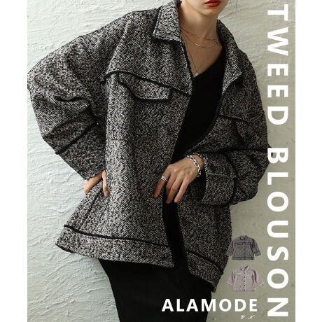 秋冬ムード漂うツイードジャケットです。縁のフリンジ使いがデザインのポイントに。襟付きのカジュアルなデザインをツイード生地で程よくエレガント要素をプラスしてカジュアルはもキレイ目派も取り入れやすいデザインに!