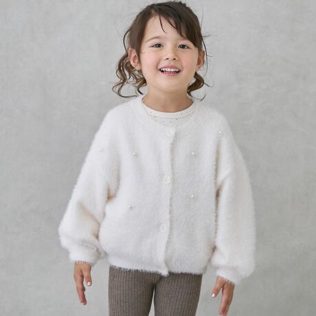 3354203:【リンク】シャギーニットカーディガンで大人サイズのお揃い着用ができます。