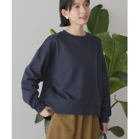 横幅がゆったりしています。配色ラインはステッチなのであまり目立たなく、シンプルなトレーナーにみえます