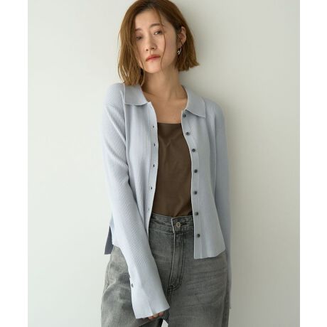 大きめの襟がアクセントの着心地優しいリブニットカーディガン。