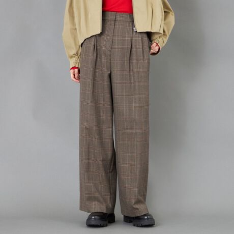 タックとセンターラインでシャープな印象のチャック柄セミワイドイージーパンツ。