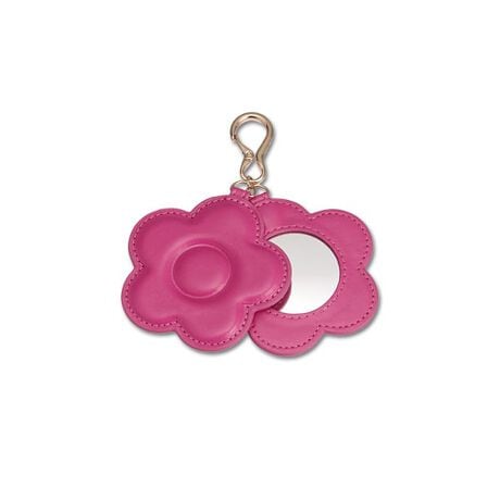 ミラーとデイジー型の合皮を組み合わせたバッグチャーム。◆ポイント・ガラスのミラーを使用・ミラーは隠れる仕様・本体裏とナスカンに刻印をプラス「フューシャピンク」はWEB限定カラーです。[型番:225-904638]