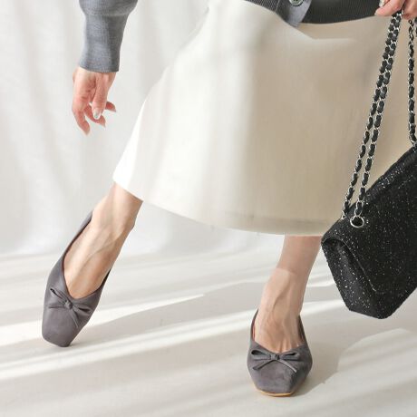 スクエアトゥが旬顔のFin(フィン)のスクエアトゥVカットバレエシューズが登場しました。今季大注目のスクエアトゥはハンサムなフォルムなのに女性らしいエレガントさも叶えてくれる優れもの。浅すぎず深すぎない絶妙なラインが足元をしっかり包み込んでくれて、女性らしい華奢な足元を作り上げます。いつものラウンドトゥのバレエシューズとは一味違う大人っぽさとトレンド感を存分に楽しめる一足です。