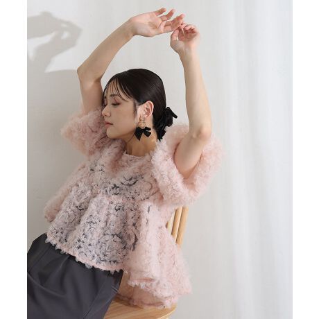 デコルテから袖にかけての透け感が、女性らしさを演出します。