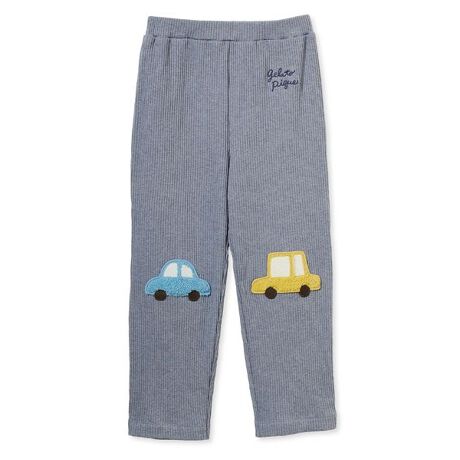 リボン、クルマ、ヒョウ。子どもたちがときめくモチーフをあしらった、ギフトにもおすすめしたいKIDSシリーズです。肌触りの良いリブ素材を使用した細身のストレートパンツ。ひざの部分に、3種類のモチーフをアップリケで表現しました。右後ろにポケットを付け、左腰にワンポイントのロゴ刺繍入り。色はリボンモチーフのグレー、ヒョウモチーフのベージュ、クルマモチーフのネイビーの3色展開です。同シリーズのワンポイントプルオーバーやフリースの羽織り、小物類を合わせたり、BABYサイズとのリンク・コーディネートもお楽しみいただけます。