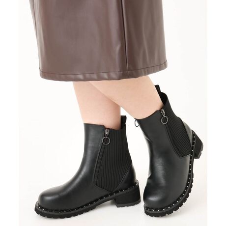 [型番:OZ6LA11089]ソールにきらりと輝くスタッズを施したスタイリッシュなブーツ。履き口に伸縮性のあるリブ素材を合わせ足あたりも優しく、ダブルファスナー仕様で楽に着脱もでき快適に履いていただけます。インソールは取り外しでき、お好みでサイズ調整できるのも嬉しいポイント。どんなボトムにも合わせやすく、クローゼットに一足は加えておきたいおすすめのアイテムです。 〈ポイント〉 ・抗菌防臭 ・低反発高反発インソール ・甲高・ワイズ5E