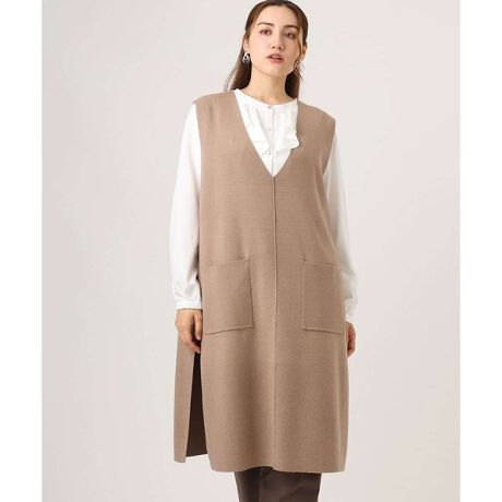 Iラインシルエットですっきり着られるニットのロングベスト。