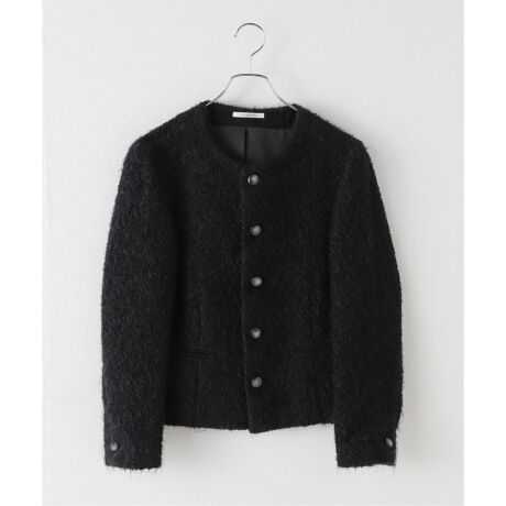 毛足のある立体的な表面感ながら上品さを纏ったノーカラージャケット。