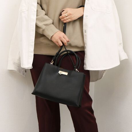 シンプルボディーにアシンメトリーなゴールド金具がワンポイントになった2wayトート。