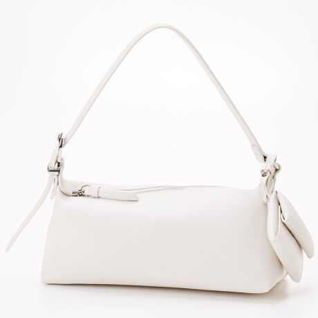 口元のファスナーとハンドルのつけ方がデザインポイントになったワンハンドルバッグ。