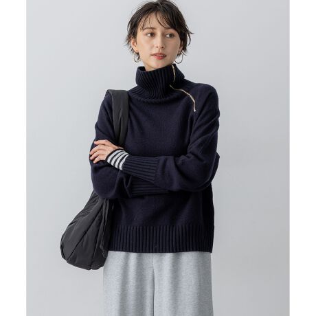ジップデザインが目を引くタートルニット。アームホールからネックラインにかけて配されたジップは、デザインのアクセントであると同時に、着こなしに変化をもたらします。ファスナーを少し開けてインナーを覗かせたり、抜け感を演出したりと、様々な表情をお楽しみいただけます。襟元、袖口、裾にはふっくらとした厚みのあるバルキーリブを使用し、全体のシルエットにメリハリと上質感をプラスしています。シンプルなパンツやスカートと合わせるだけで、こなれたスタイリングが完成します。オフィスシーンではきれいめパンツと、休日はデニムやワイドパンツやスカートと合わせて、幅広いシーンで活躍します。カラーは、上品で合わせやすい定番のグレー(#004)、やわらかく女性らしい印象を与えるベージュ(#033)、深みがありシックで落ち着いたダークブラウン(#035)、知的で洗練された印象を与える万能なネイビー(#075)の4色展開です。