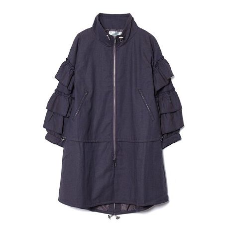 袖に螺旋状のフリルをあしらったボリュームスリーブが印象的なジップコート。
