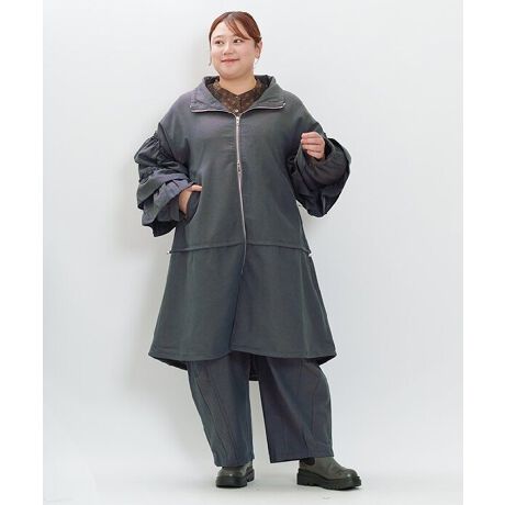 袖に螺旋状のフリルをあしらったボリュームスリーブが印象的なジップコート。