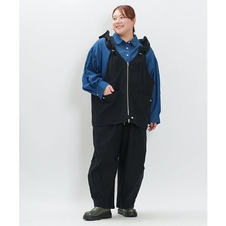 前開き仕様のベストは、なんとバッグにも変身するユニークなデザイン!