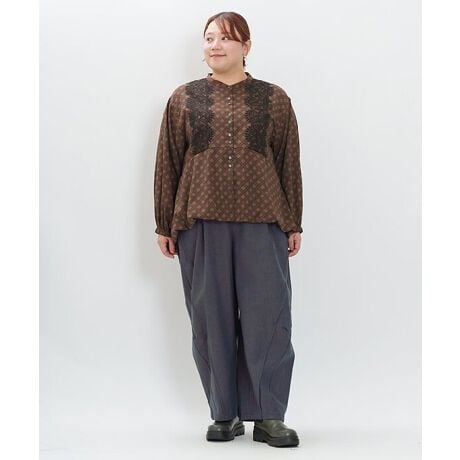 前に大きく回した脇ラインが、たっぷりとしたシルエットを無理なく美しく見せてくれます。